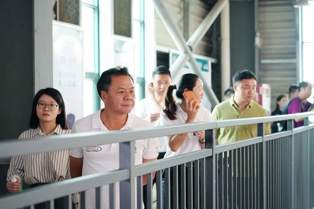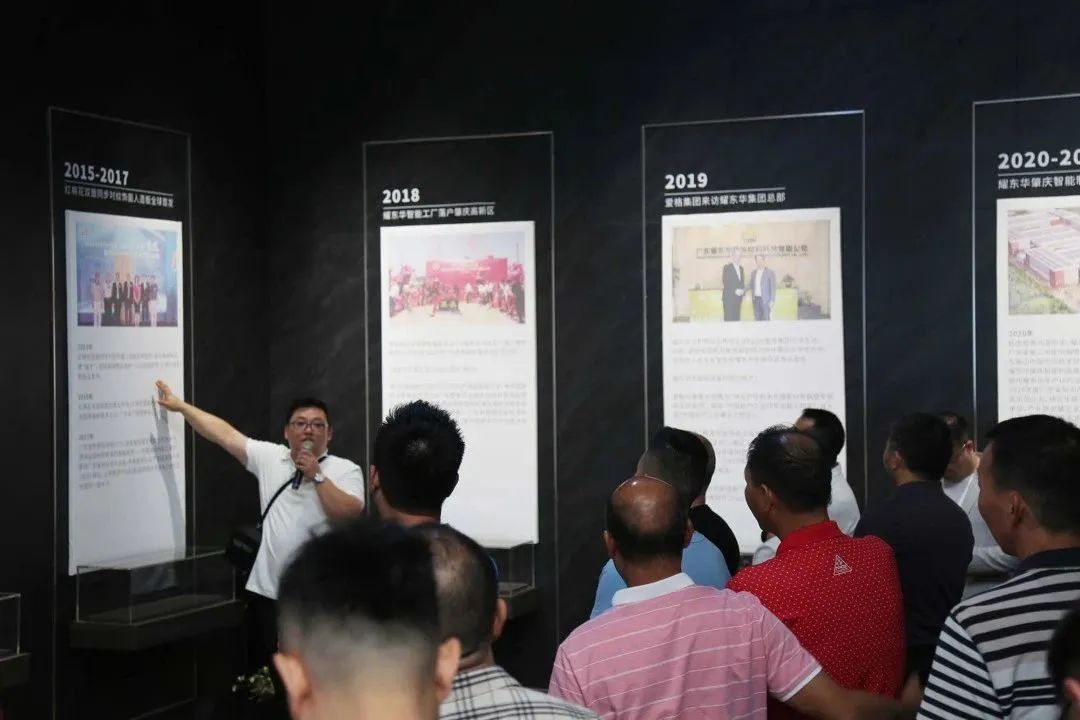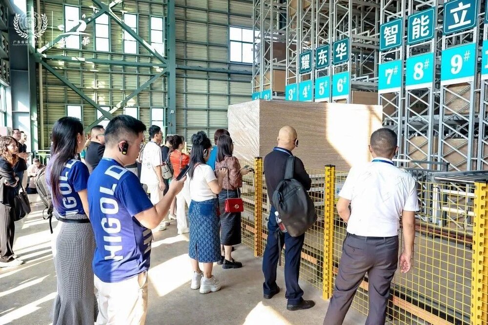 ▲廣東省家居建材商會(huì)會(huì)長曹宇勇(右十一)、廣東耀東華集團(tuán)有限公司董事長曾敏華(右十二)、廣東耀東華集團(tuán)有限公司副董事長吳惠儀(左九)帶領(lǐng)一眾會(huì)員參觀耀東華智能制造基地。