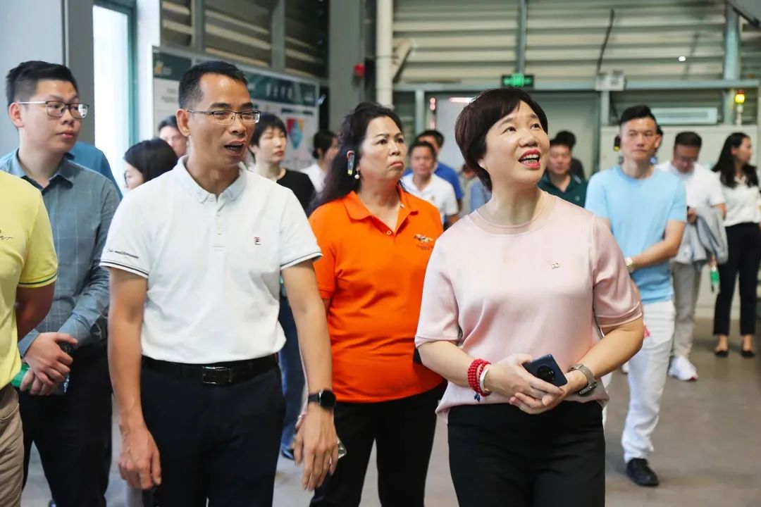 ▲耀東華集團(tuán)吳惠儀副董事長、吳惠娟副總經(jīng)理帶領(lǐng)鄧鎮(zhèn)長以及企業(yè)會(huì)員走進(jìn)耀東華智能制造基地