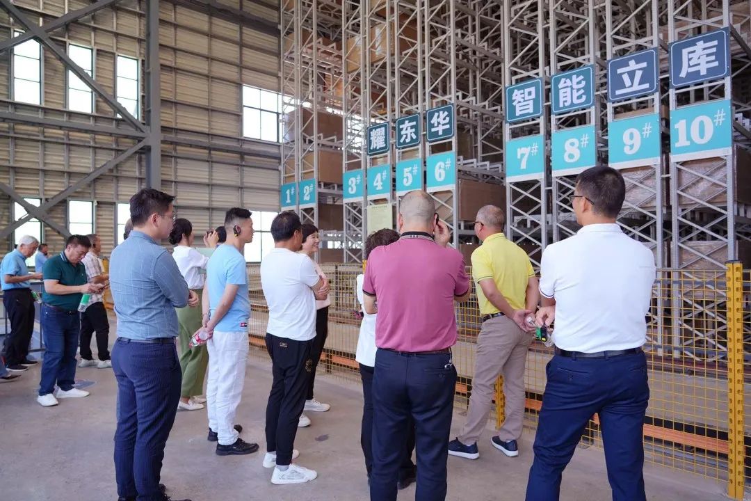 ▲會(huì)員企業(yè)代表一行參觀耀東華展廳以及智能立體庫