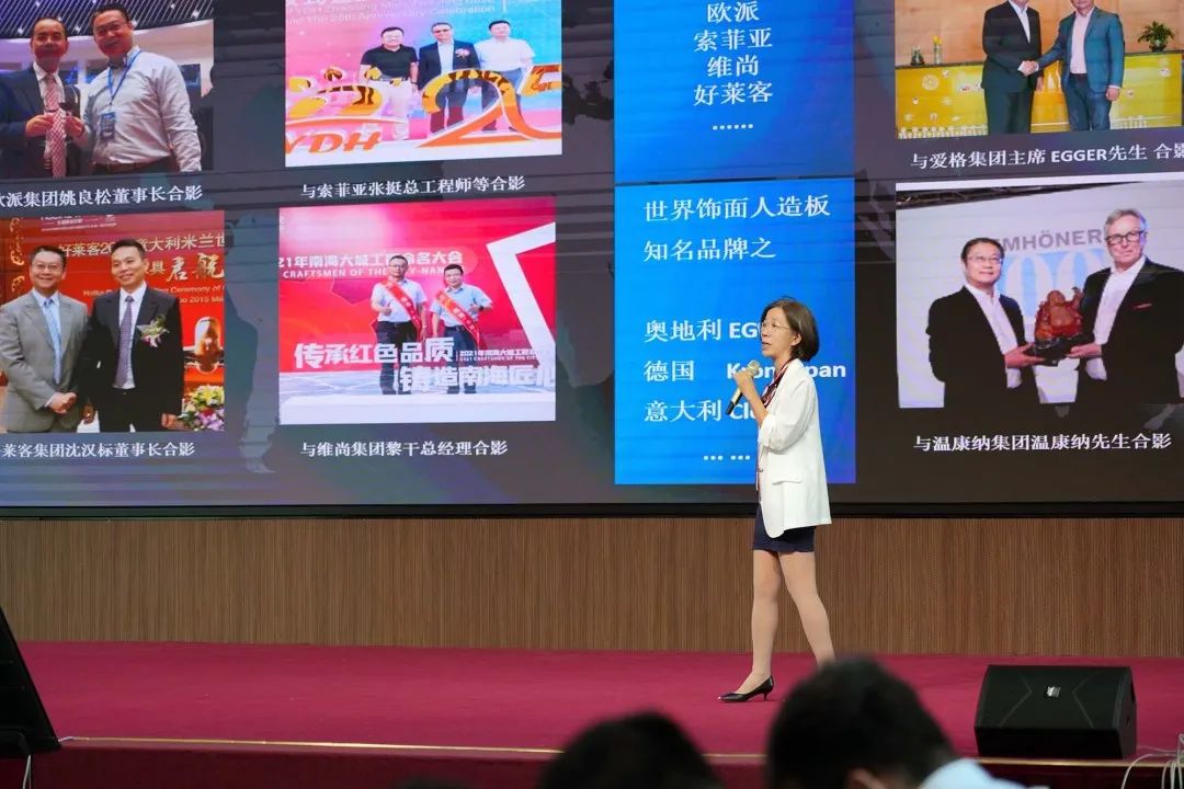 吳惠娟副總經(jīng)理以“智造高端飾面板 助推綠色家居高質(zhì)量發(fā)展”為主題,從“企業(yè)簡介”、“從飾面板、家居產(chǎn)業(yè)鏈談高質(zhì)量發(fā)展與企業(yè)家精神”兩方面論證主題,最終以高端飾面板品牌方的角度傳達(dá)了對未來綠色家居生態(tài)鏈的展望,贏得了在場會(huì)員代表的點(diǎn)贊!