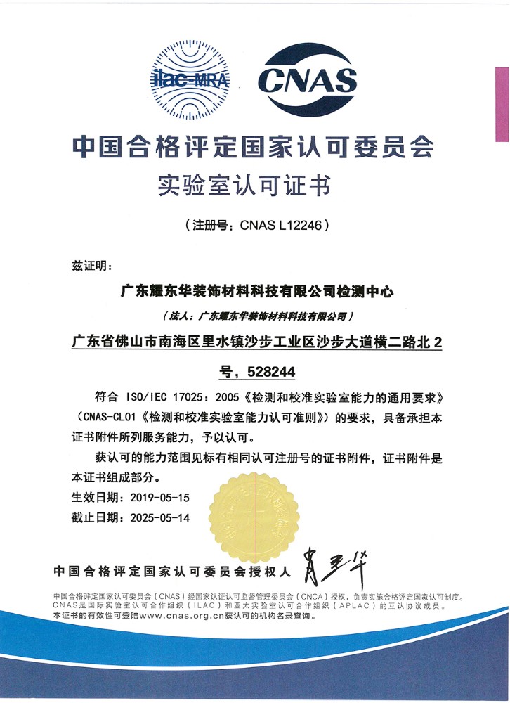 表明耀東華的實驗室具備了按有關(guān)國際認(rèn)可準(zhǔn)則開展檢測和(或)?;捶?wù)的技術(shù)能力,向客戶提供的測試/校準(zhǔn)服務(wù)可以聲稱是符合國際標(biāo)準(zhǔn)要求的,對板材等產(chǎn)品的檢測結(jié)果得到國內(nèi)和國際上的承認(rèn)。